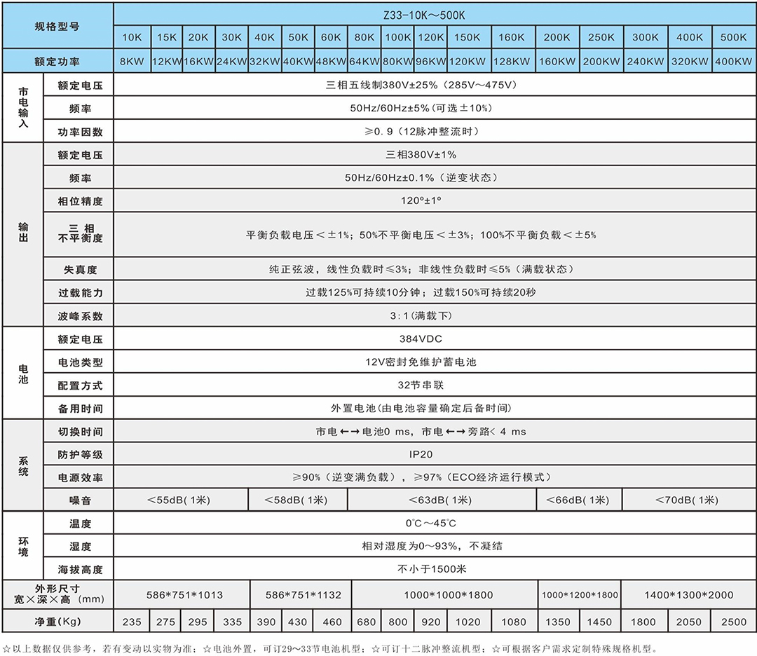 ● 完善的保护功能:具有优异的输入输出过欠压保护、相序保护、电池过充过放保护、输出过载短路保护、温度过高保护和报警功能;