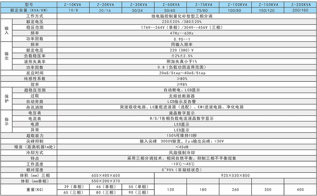 ● 稳压范围广,在176V-264V 及304 -456V范围内可以使用,适用于纯电感性(如马达性设备、雷射印表机、照片冲洗设备)、 电容性(如电脑)、发电机、阻性负载等各种设备