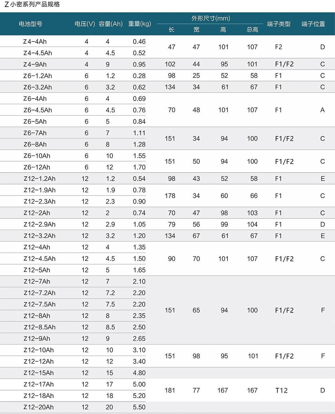 Z中密系列胶体蓄电池