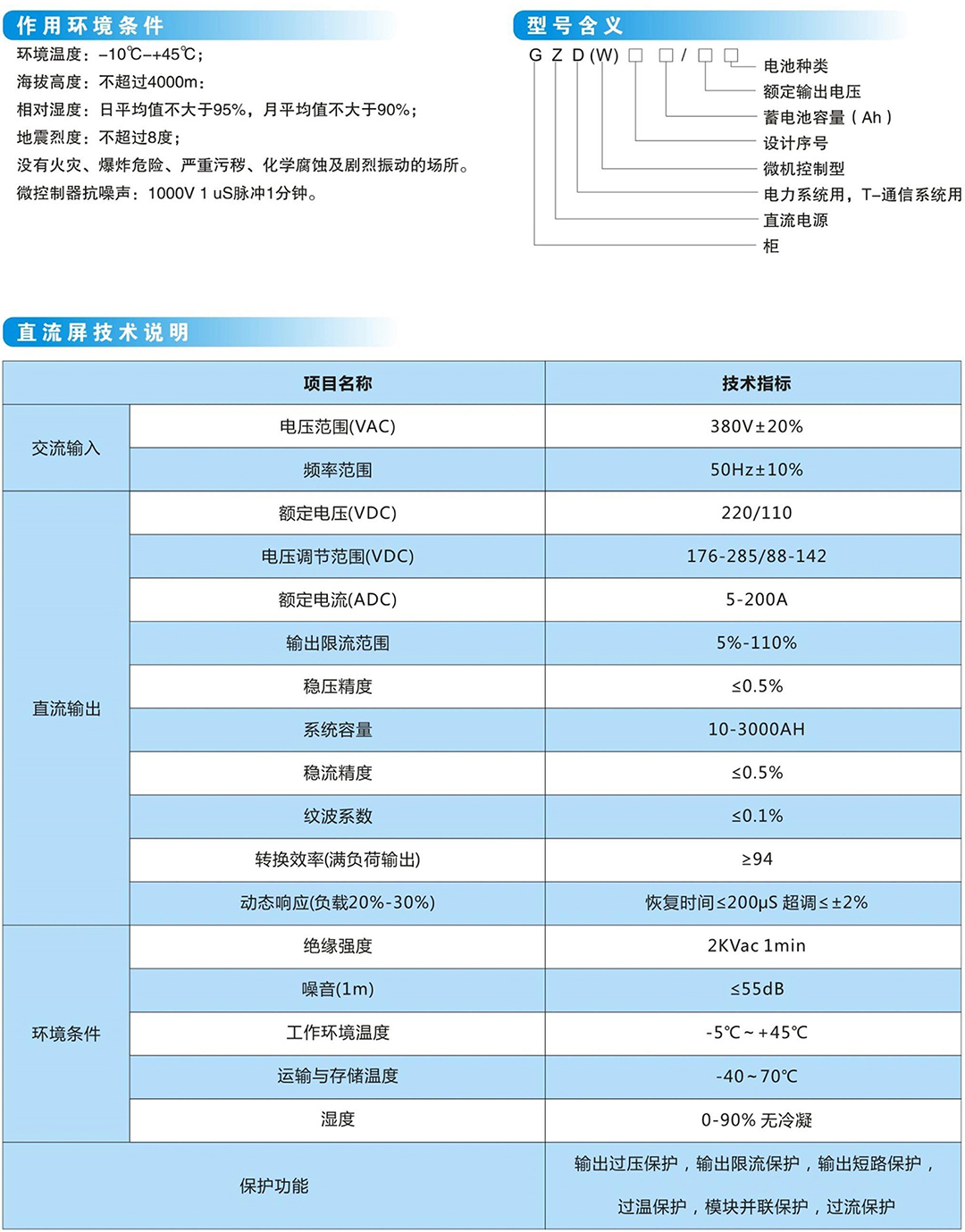 直流屏是直流电源操作系统的简称。通用名为智能免维护直流电源屏,简称直流屏,通用型号为GZDW。直流屏适用于10~500kV变电站、发电厂和高层建筑、住宅小区等的配电室以及小型自备发电厂,作为高压开关、继电保护、自动装置、控制系统等的操作、控制电源和事故照明电源。同时也可应用于其它需要直流电源的场所( 如石化、矿山、铁路等 )。直流屏由交直流配电单元、充电模块单元、降压硅链单元、直流馈电单元、配电监控单元、监控模块单元及绝缘监测单元组成。
